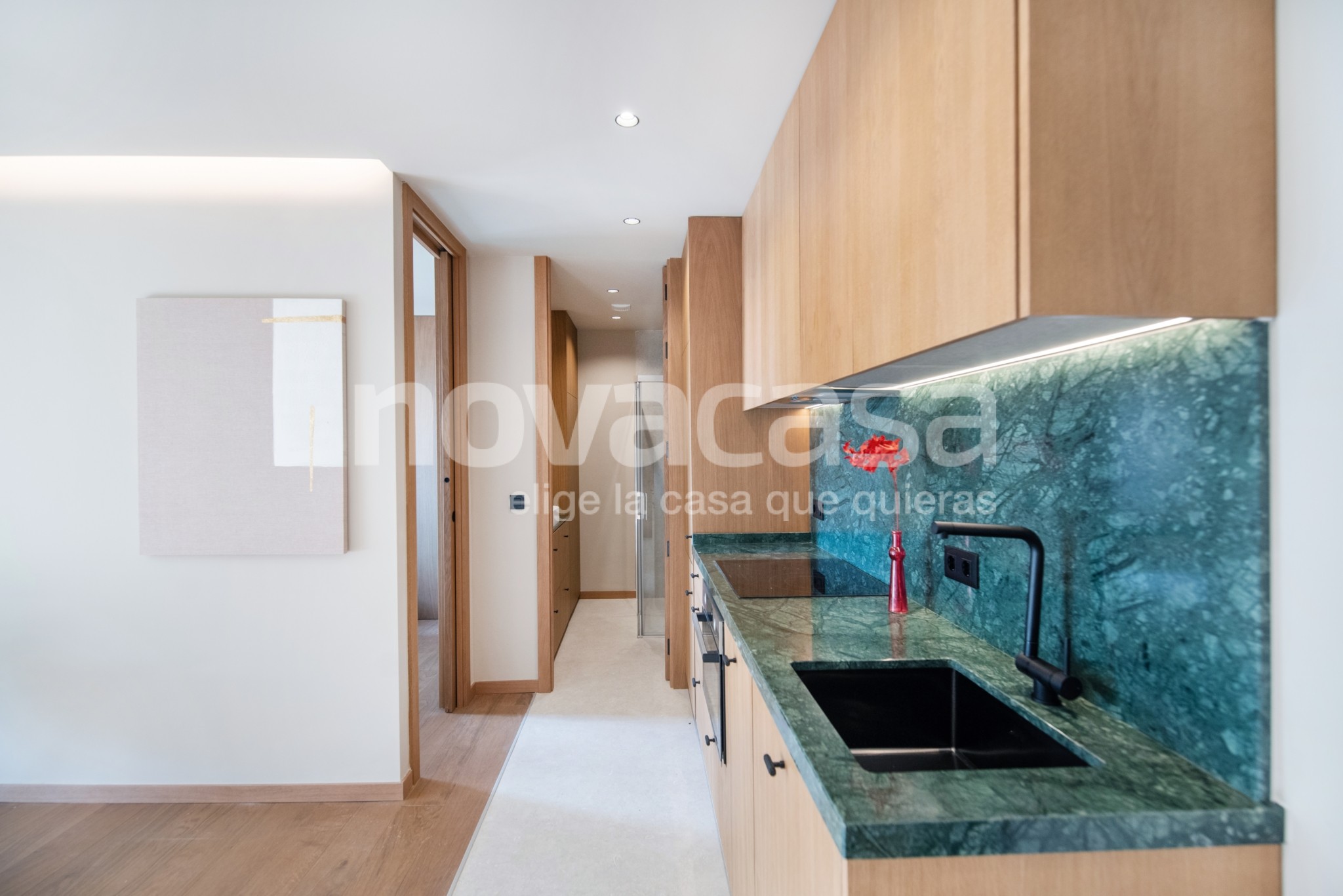 La vivienda cuenta con unos 50 m2 útiles que se distribuyen en 2 dormitorios, 2 armarios empotrados, 1 baño equipado con mobiliario a medida y gran plato de ducha con mampara de cristal, cocina amueblada y equipada con electrodomésticos abierta al gran salón comedor.