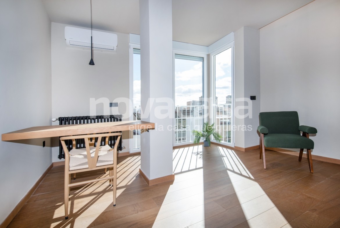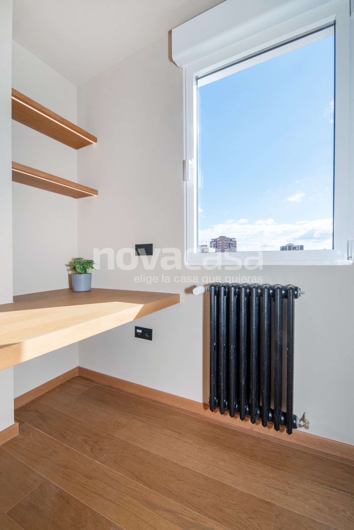 Reformada de forma integral optimizando el espacio y haciendo un entorno abierto lleno de luz y muy confortable, para la reforma se han utilizado materiales de primera calidad, el suelo es de gres rectificado imitación a madera, ventanas abatibles y oscilo batientes, las puertas de haya y puerta blindada en la entrada, cuenta con calefacción central con contadores de consumo individual, tiene aire frío / calor en el salón y video portero.