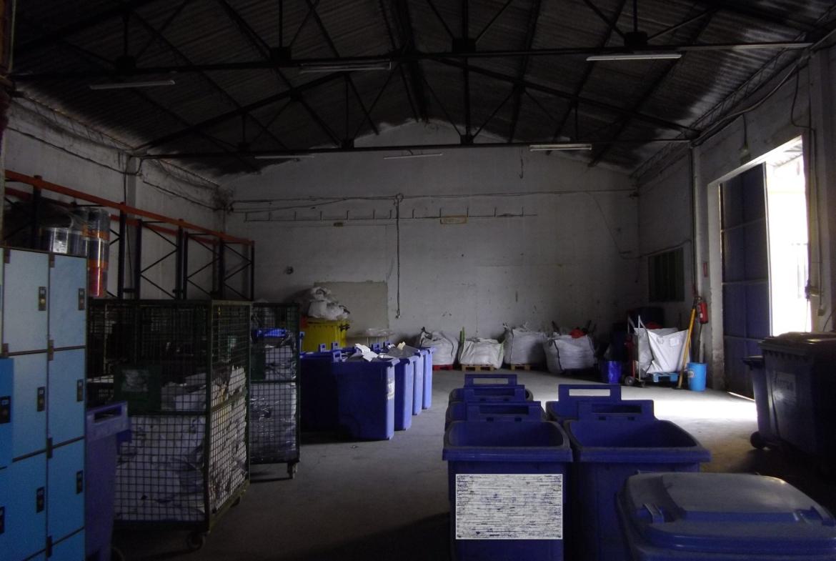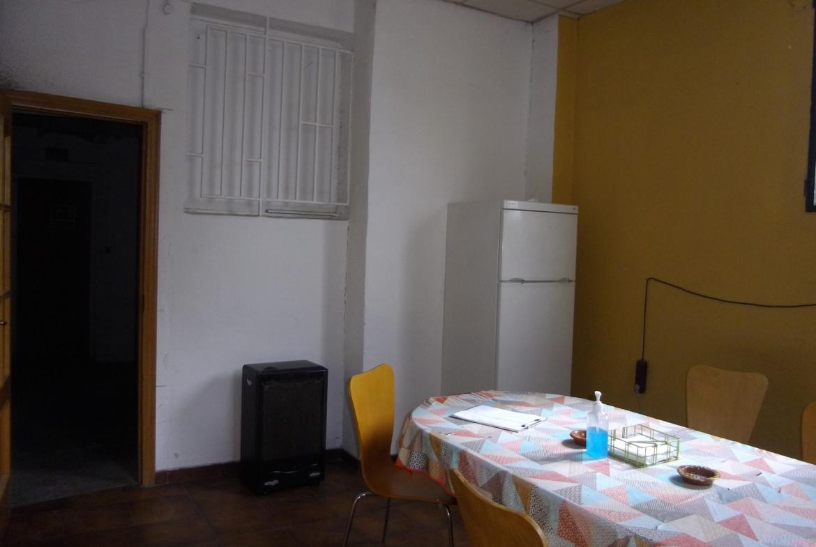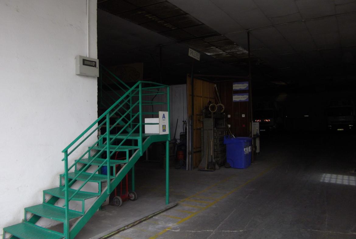 Desde el patio también accedemos a la nave grande de unos 705 m2 que dispone de un almacén, taller multiusos y vestuario con baño y una zona de comedor con cocina.