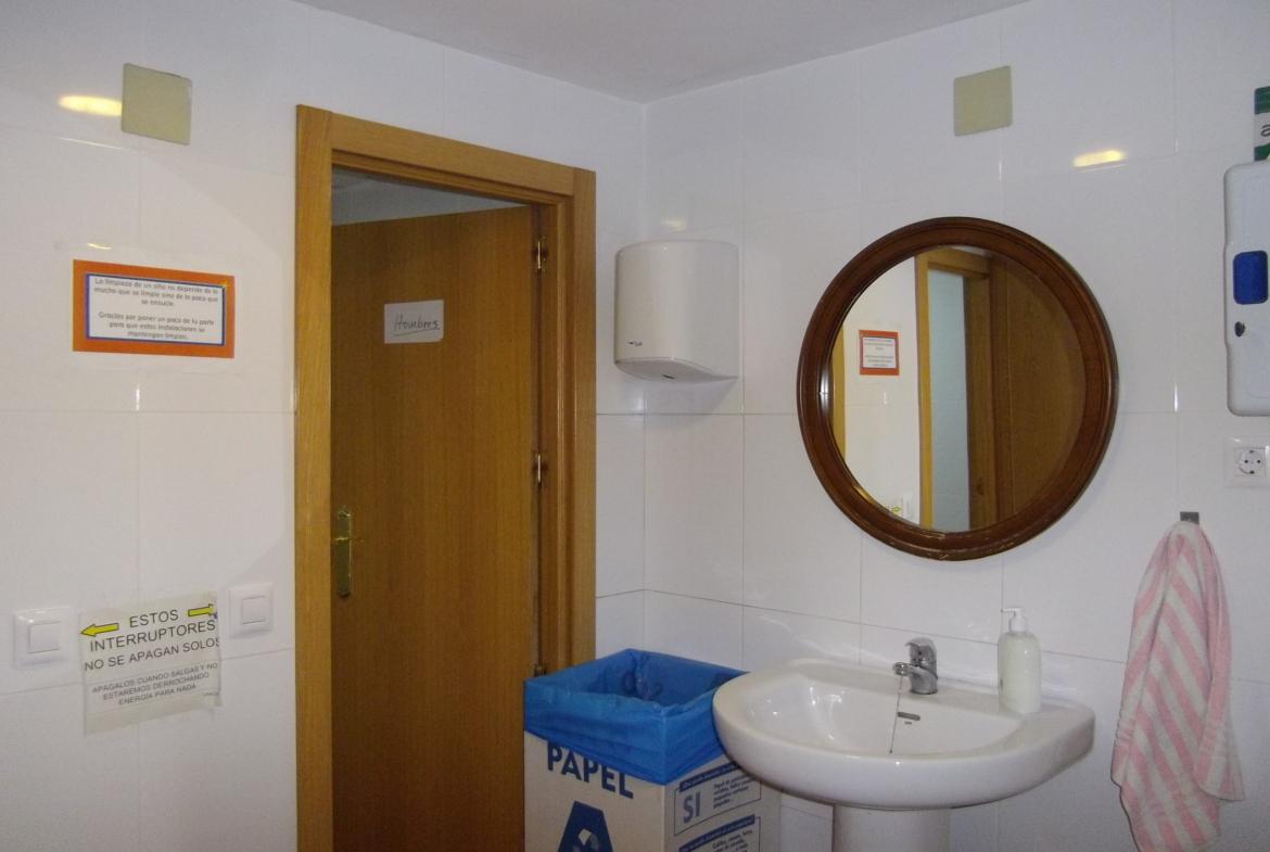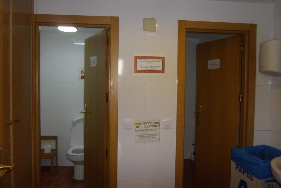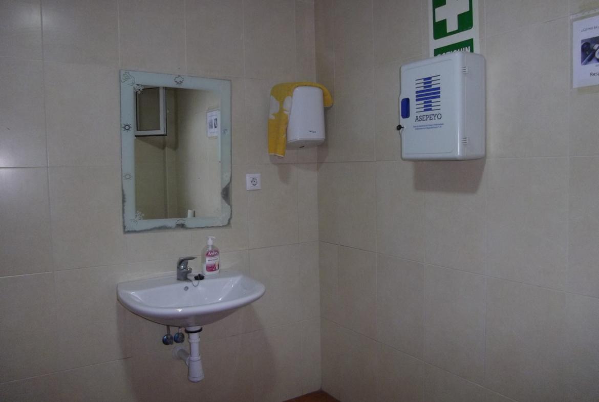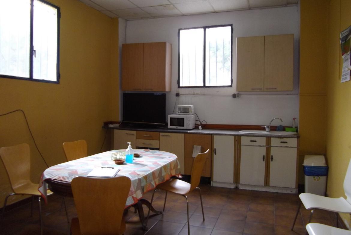 Desde el patio también accedemos a la nave grande de unos 705 m2 que dispone de un almacén, taller multiusos y vestuario con baño y una zona de comedor con cocina.