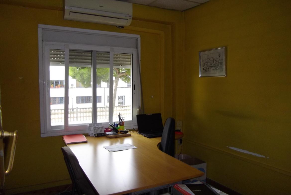 La nave consta de 86 m2 de Oficinas y despachos en dos plantas totalmente acondicionados y acceso a la nave pequeña de unos 220 m2 con entrada y salida de vehículos al patio de unos 307 m2.
